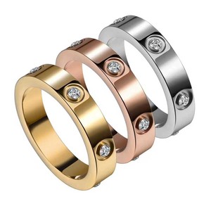 خواتم كلاسيكية من 6 ماسات عالية الجودة مستوحاة من مجوهرات بلينغ من الفولاذ المقاوم للصدأ عيار 18 من الذهب المكعب والزركون هدية للنساء