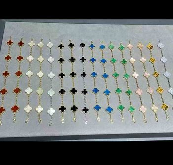 Vintage Luxury Designer Brand Designer Jóias Trevo de Quatro Folhas Pedras Naturais Ágata Encantos Pulseira para Mulheres Presente